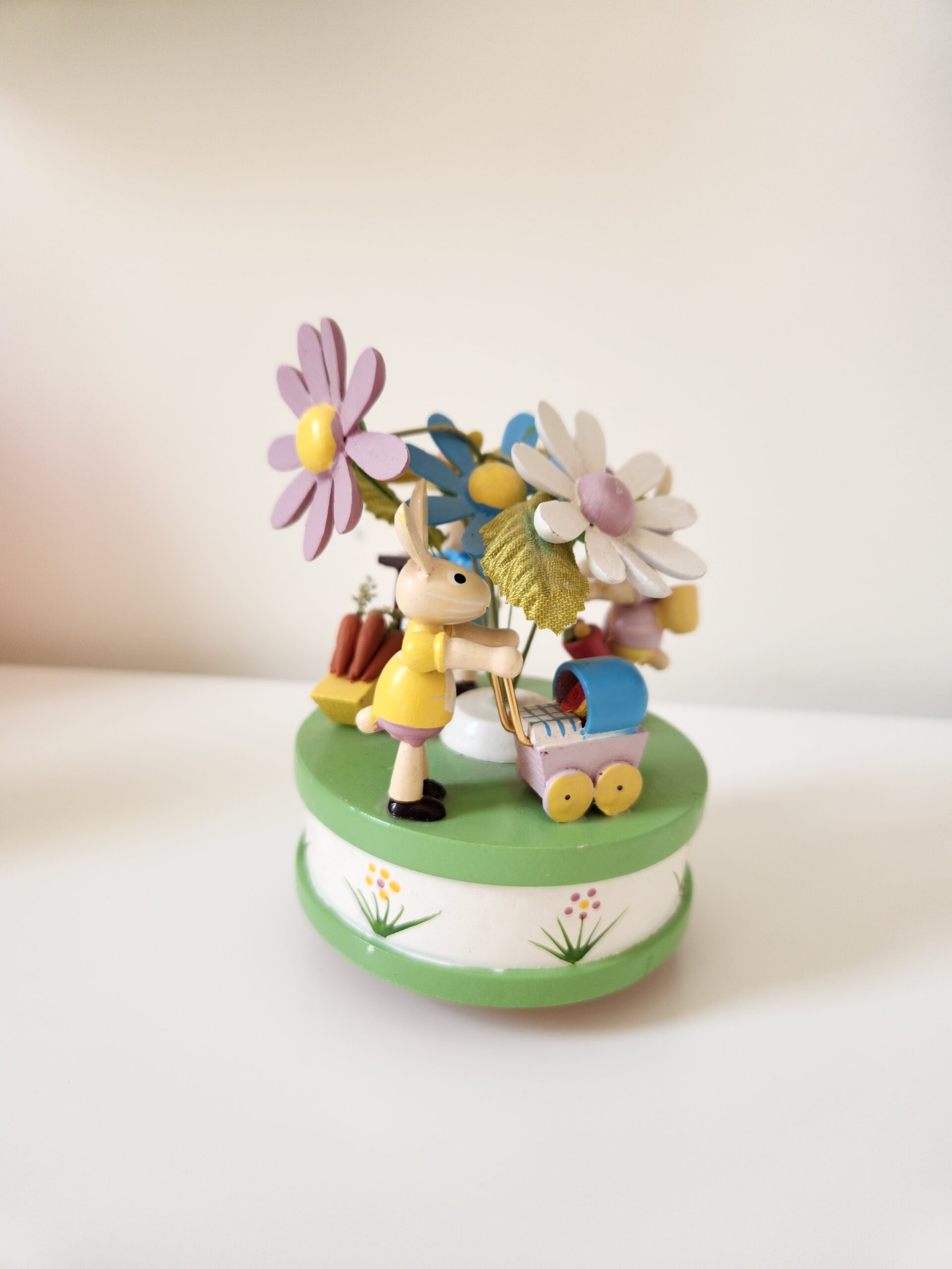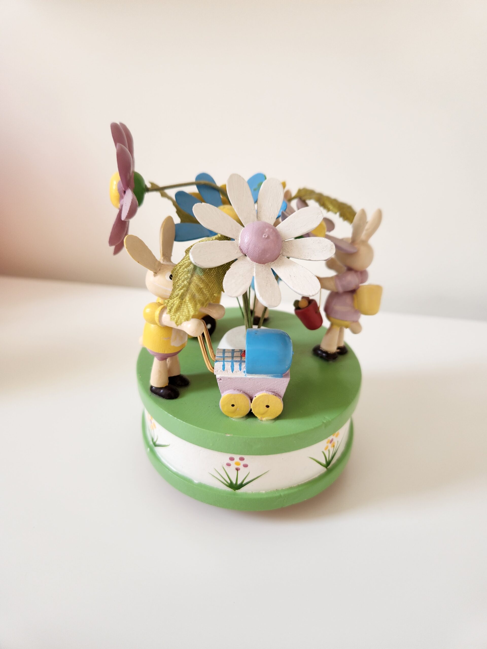 / Vintage Wooden Bunnies Musical Figure